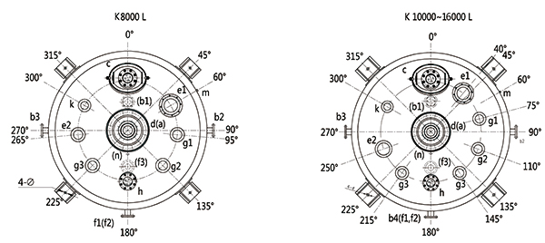 K8000L-K16000L開式搪玻璃反應釜(開式搪瓷反應釜)設計圖紙及參數如下所示: