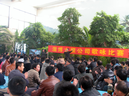 2013年4月12日下午5:00,在太極搪玻璃設備搪瓷設備公司招待所,公司文體部成功舉辦首屆太極歌詠比賽。(太極公司招待所KTV場地于今年3月份正式投入使用,演唱會標準的音響設備、高檔的無線麥克風、智能點歌系統等設施全部為職工免費開放。